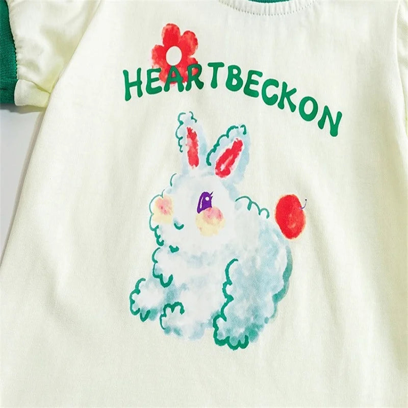 Introducing the Girls Cute Cartoon T-Shirts and Floral Pants Set by XJYIYUANLC. Made with a blend of soft cotton and polyester, this fashion-forward set is perfect for ages 12 months to 6 years. With short sleeves and a pullover closure, it's comfortable and easy to wear. Get yours now in green!