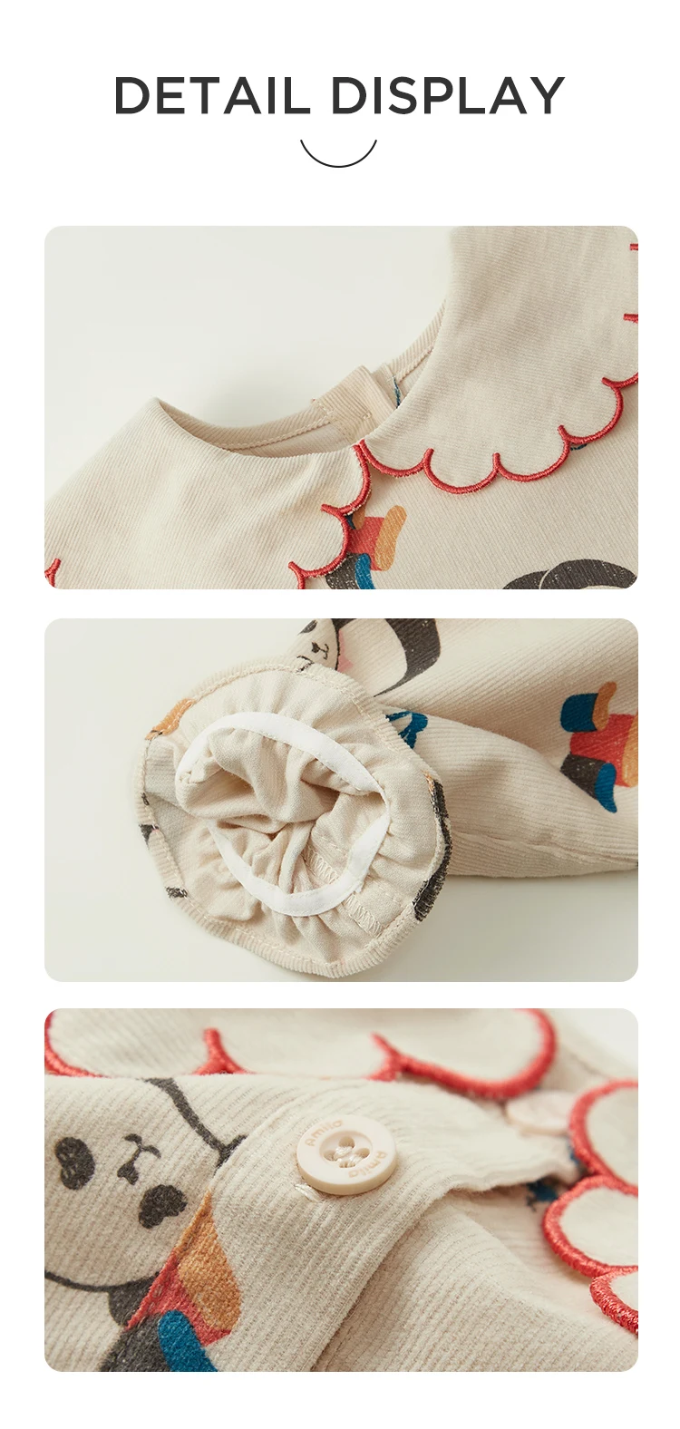 Introduce your little one to the world in style with our Baby Dress Cute Cartoon Corduroy A-line Dresses from Amila. Made of 100% cotton, these knee-length dresses feature charming appliques and a comfortable A-line silhouette. With a wide age range of 0-36 months, these dresses make the perfect choice for casual outings in spring and autumn.