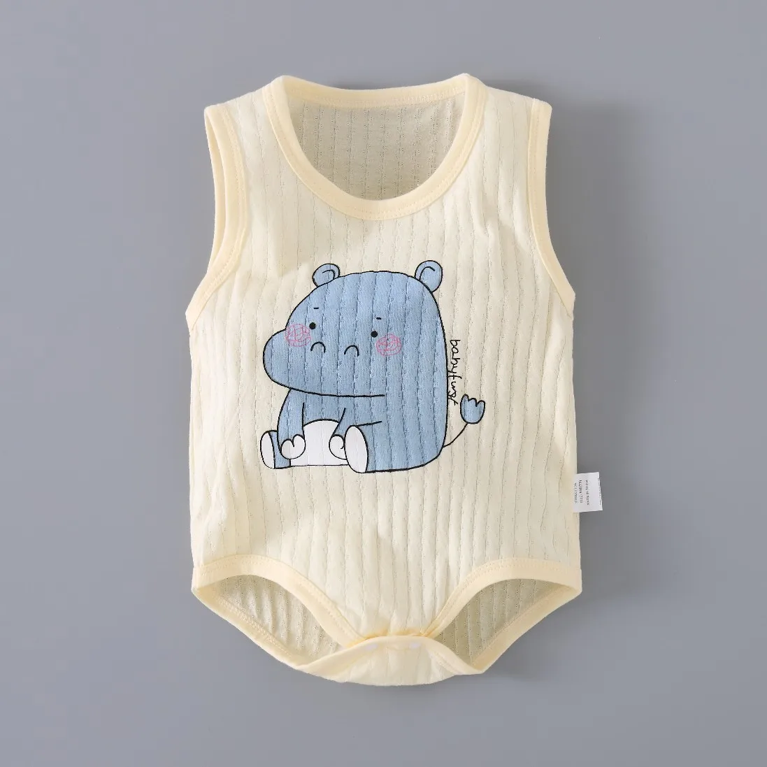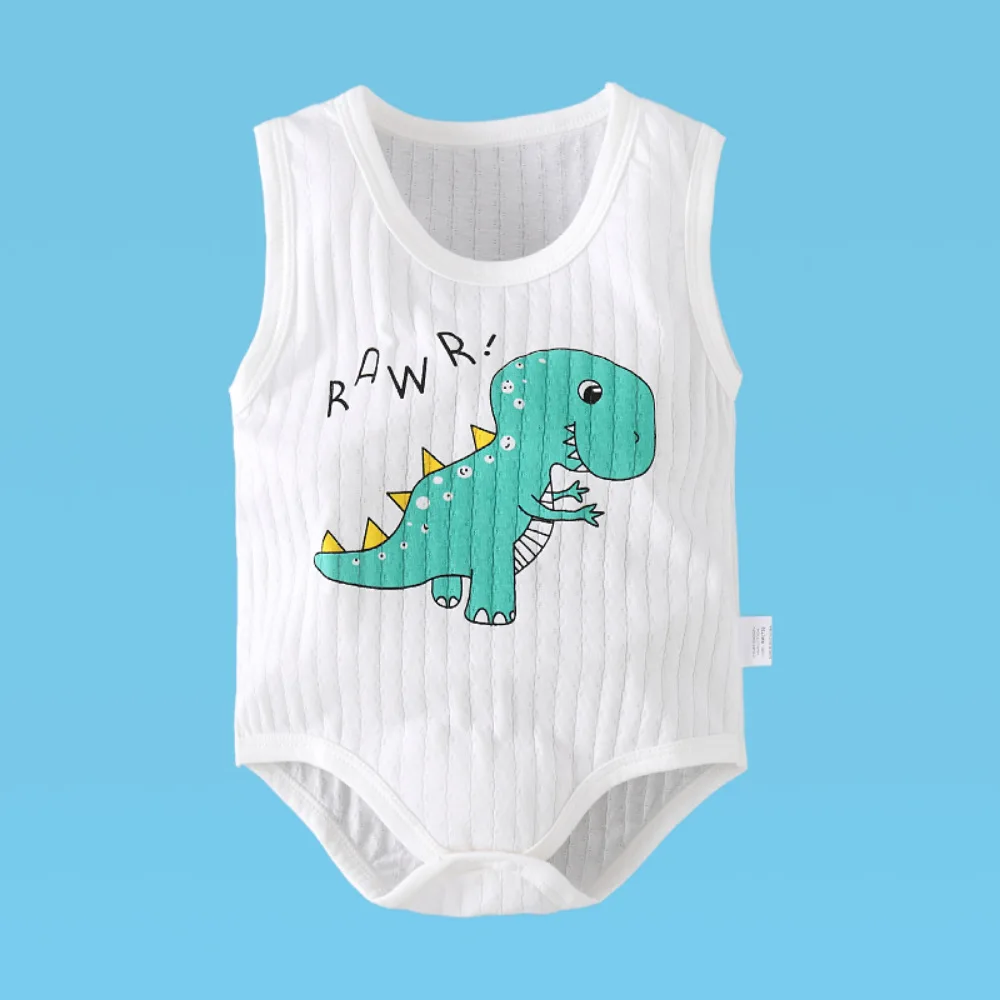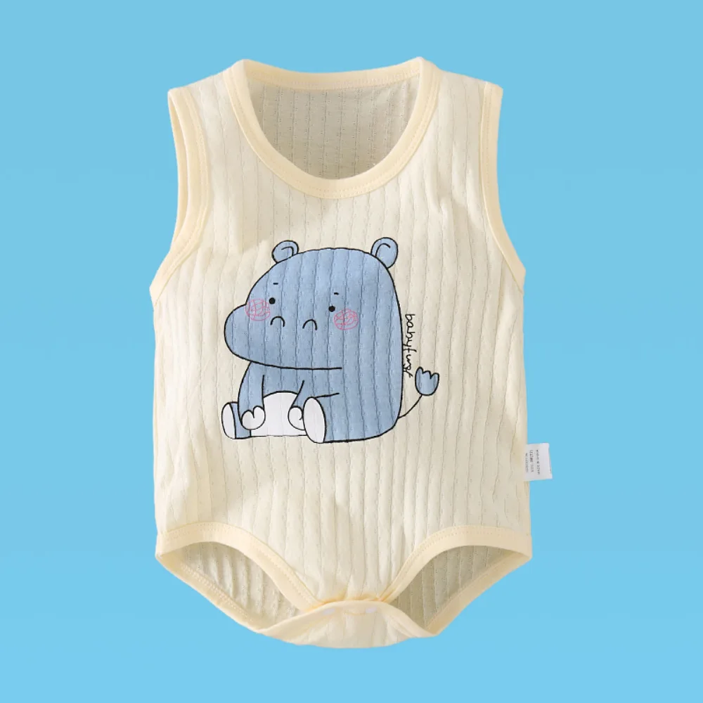 Cartoon Cotton Newborn Baby Romper Sleeveless Clothes Boys Girls Short Sleeves Jumpsuit Vest 0-24M