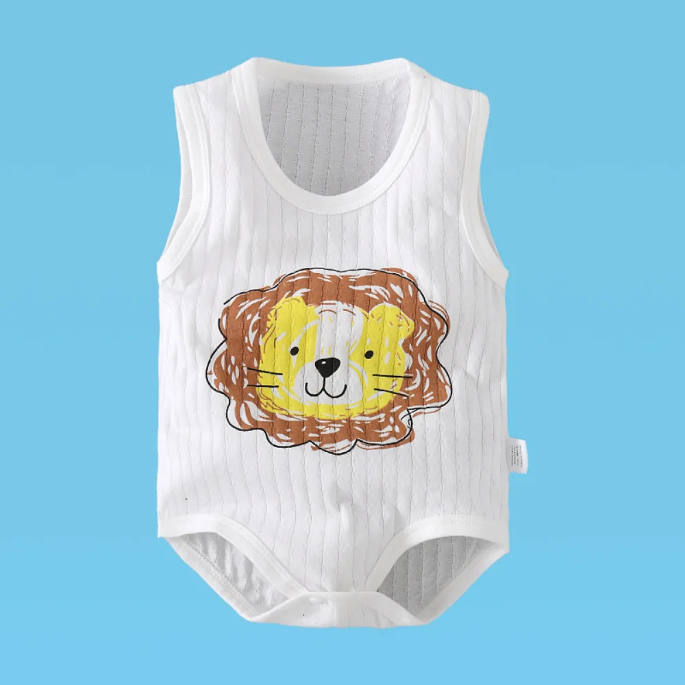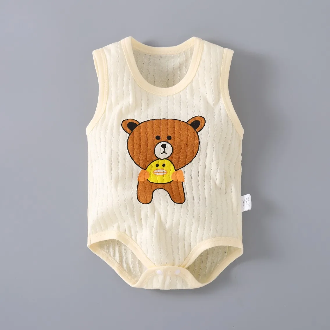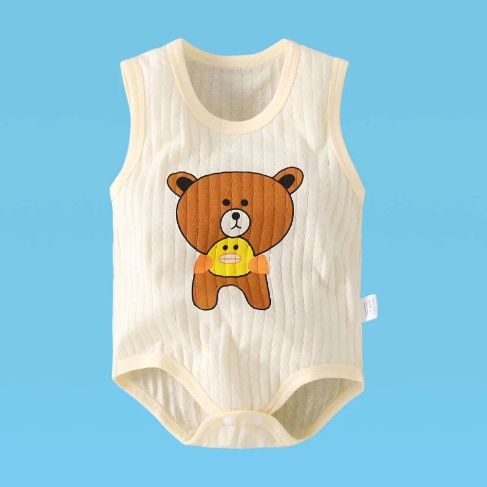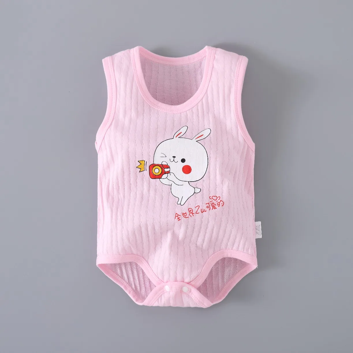 Cartoon Cotton Newborn Baby Romper Sleeveless Clothes Boys Girls Short Sleeves Jumpsuit Vest 0-24M