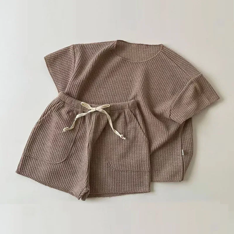 Casual Baby Girls Boys Short Sleeve Pure Color T-shirt + Shorts Clothing Sets Summer Baby Boys Girls Children's Clothes Suit