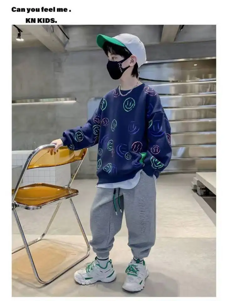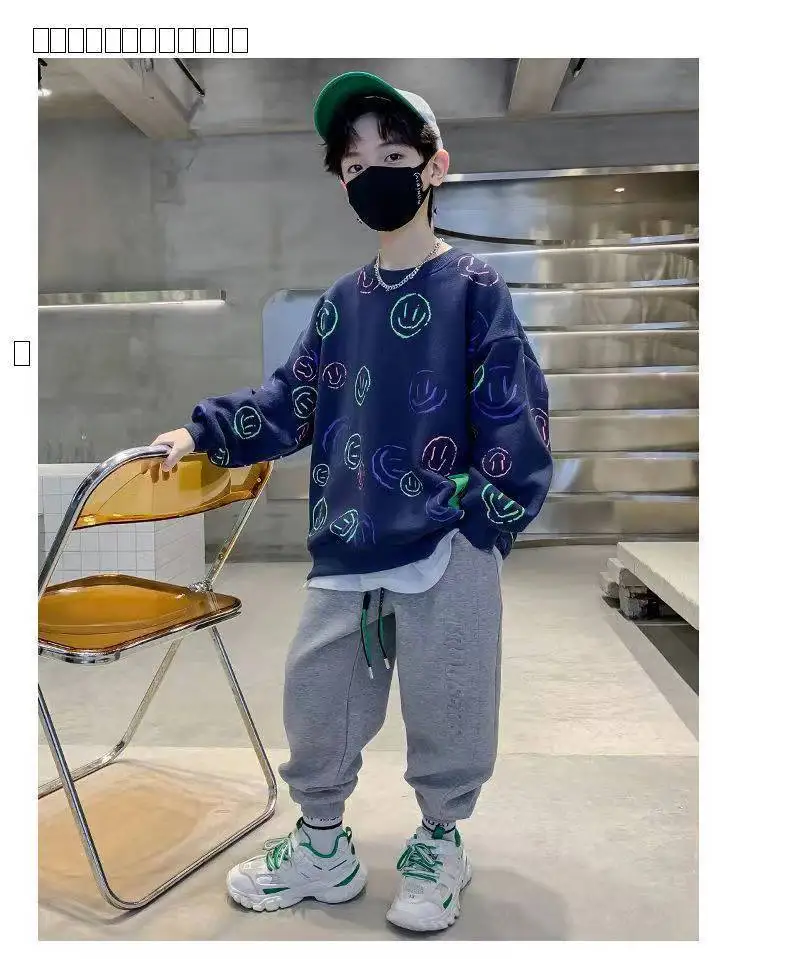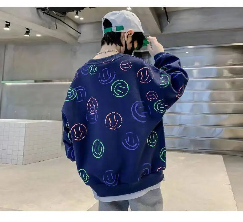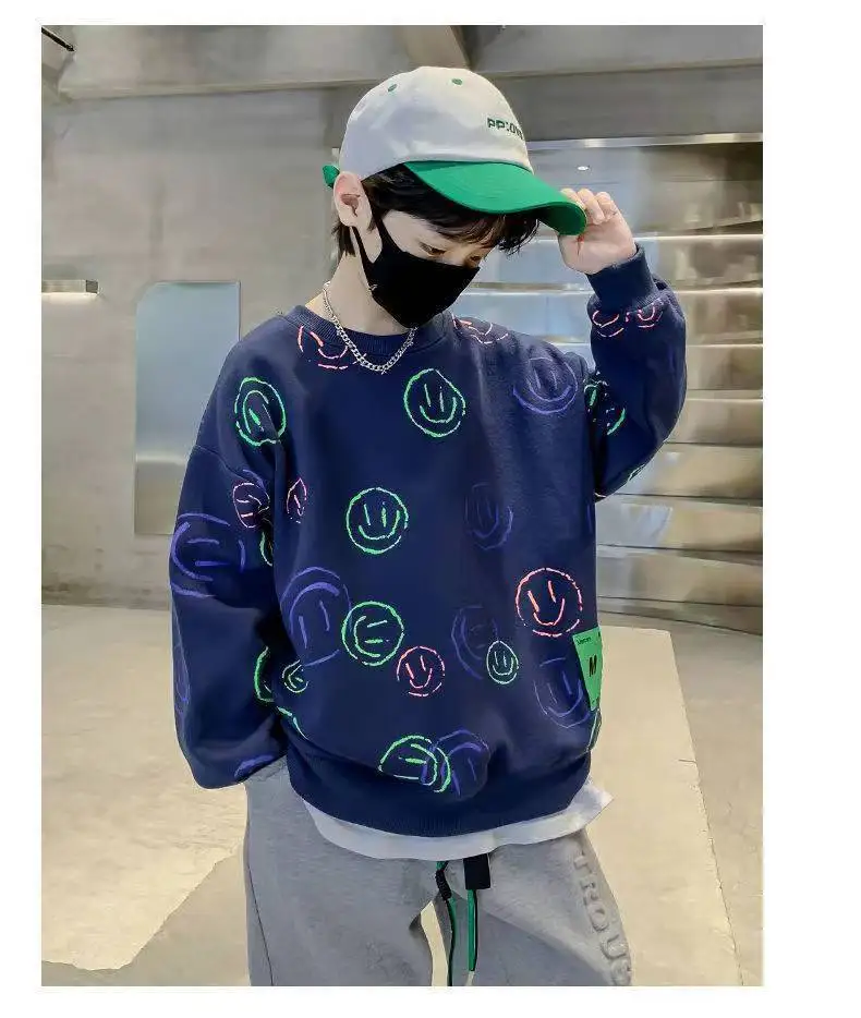 Children's Sweatshirt Autumn Boys Smile Print Long-Sleeved Korean T-Shirt Kids Clothes Fashion Streetwear Black Cotton CostumesABOUT THE SIZE: