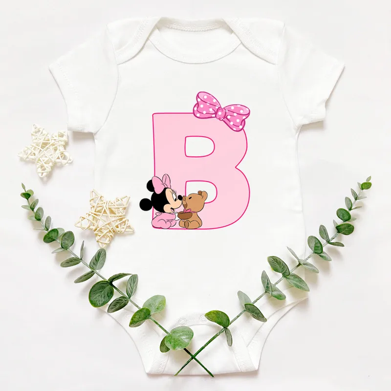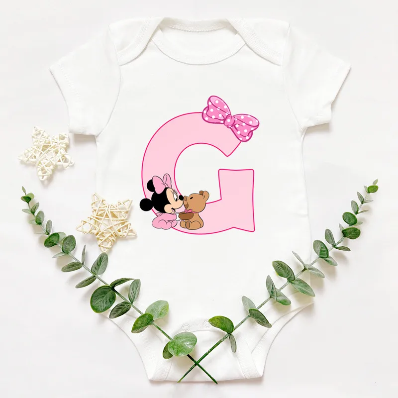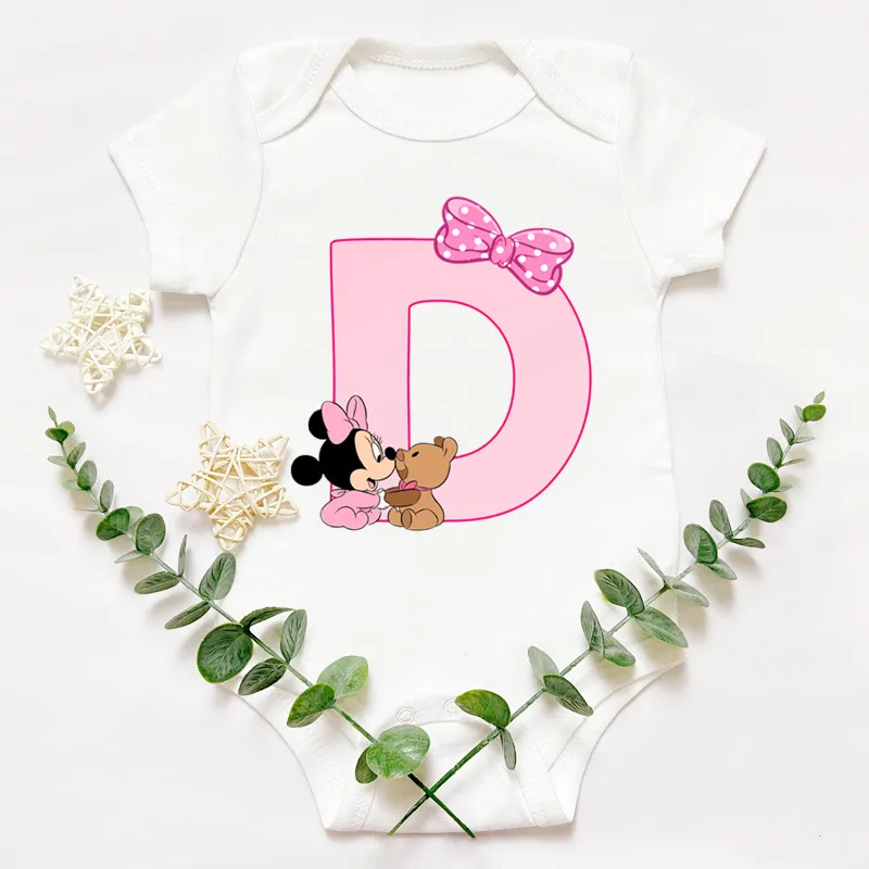 Cute Baby Custom Name Letter Combination Printing Bodysuit Minnie Mouse Letter Font A B C D E F G Short Sleeve Cotton Jumpsuit