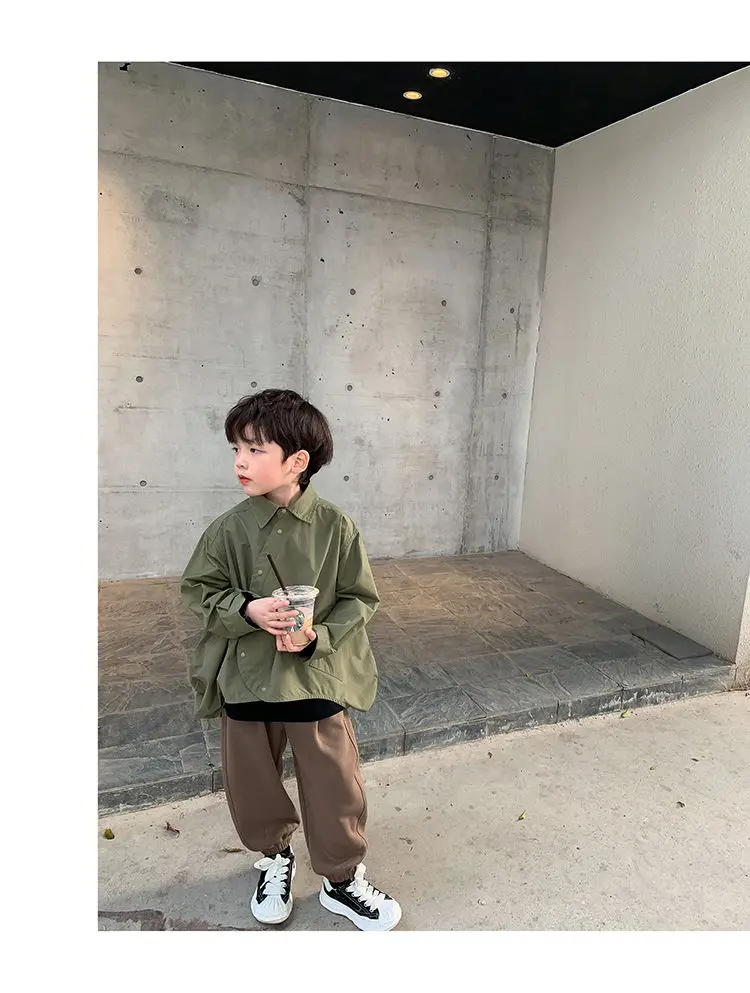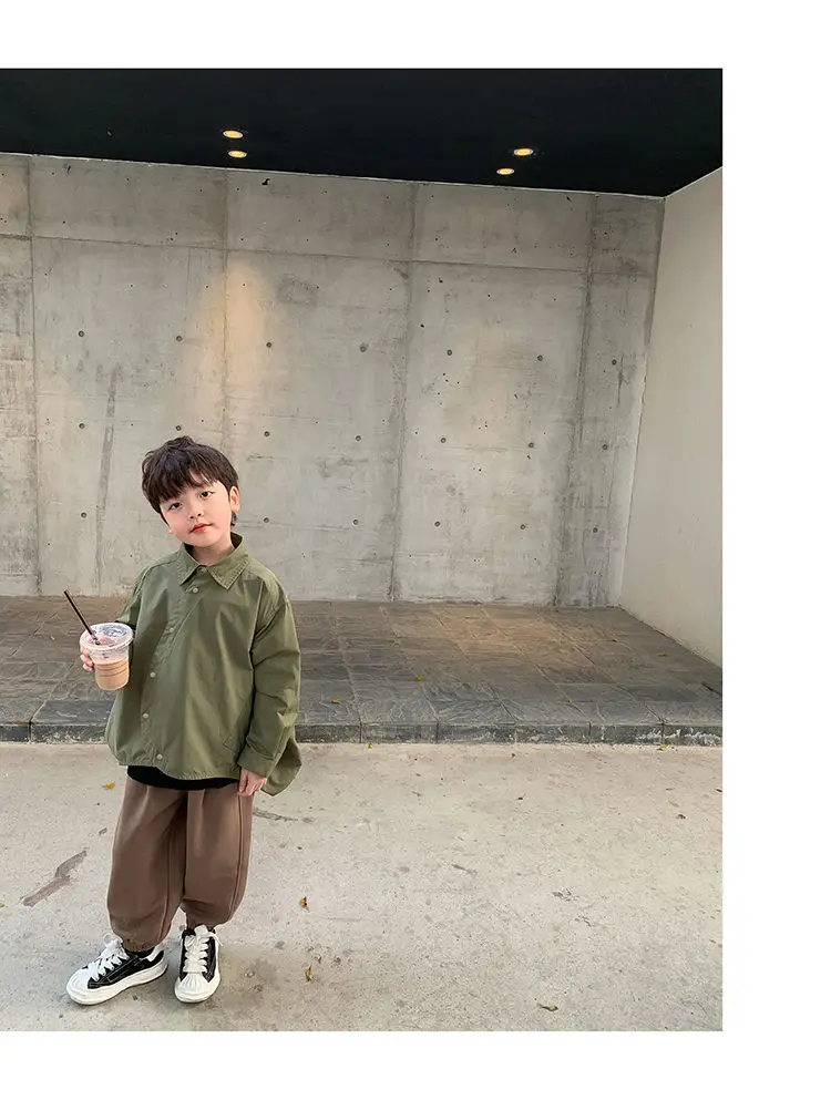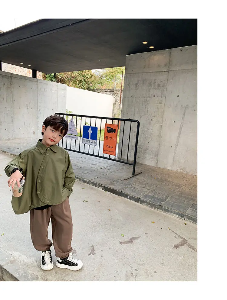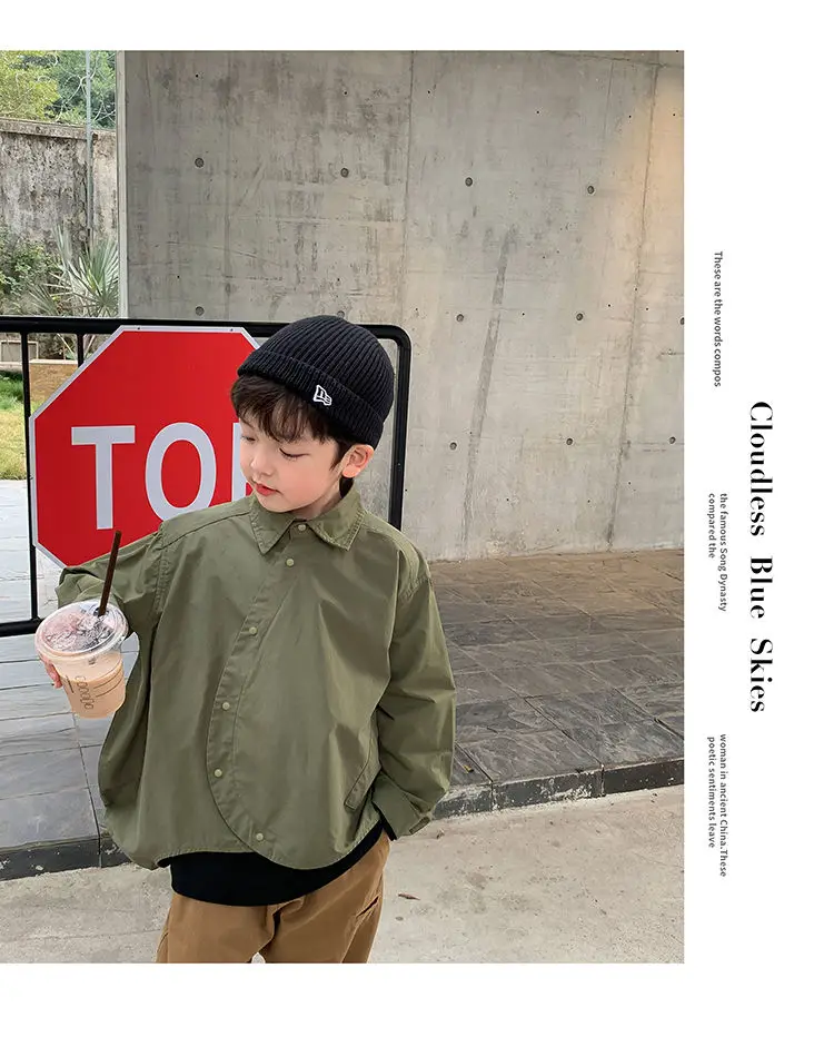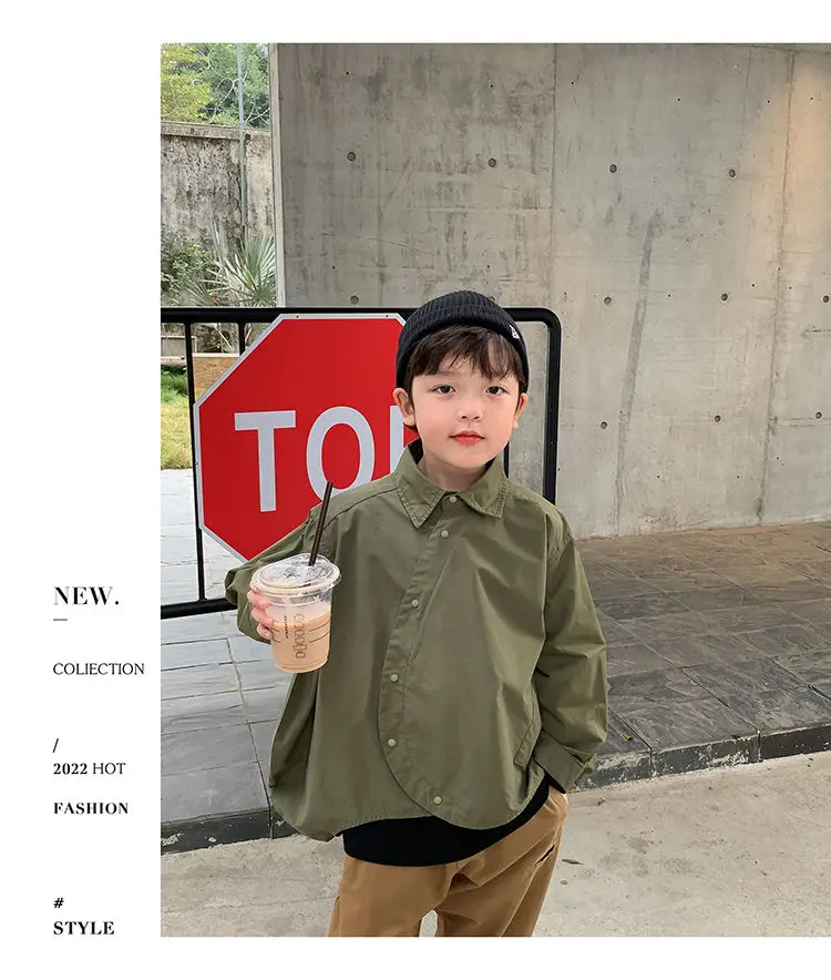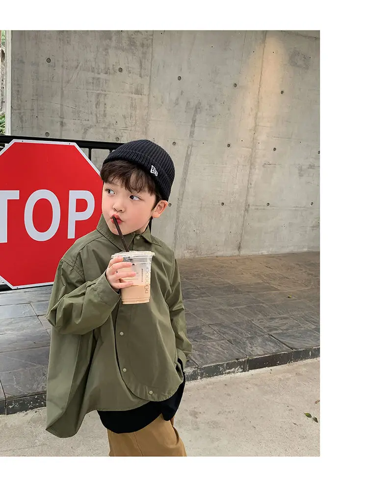 Fashion Children's Long sleeve Spring Autumn single-breasted New Boys Pure color Shirt Baby Korean Style Coat clothes Top Jacket