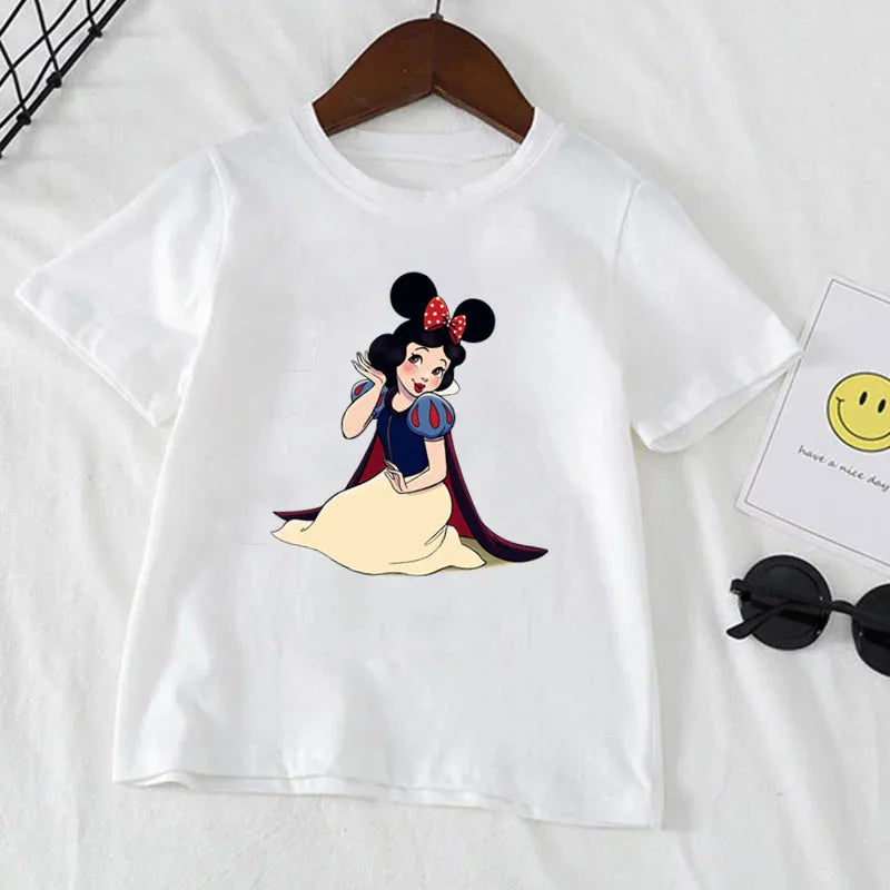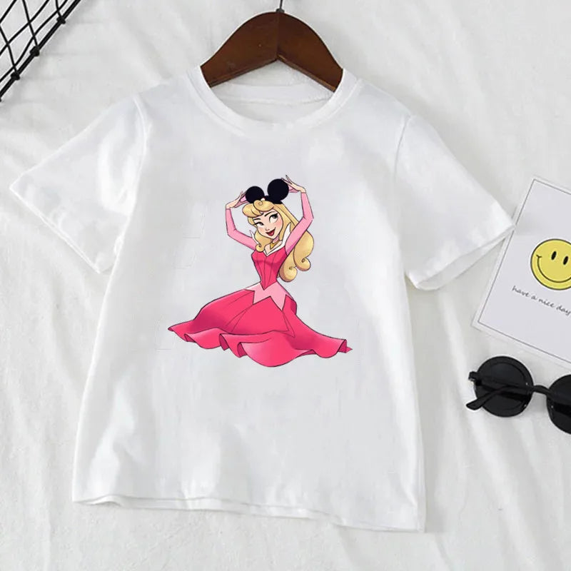 Kawaii Disney Belle Princess Children Clothes Girl T-shirts Summer Short Sleeve 1-12 Years Old Cartoon Kids T-shirt
