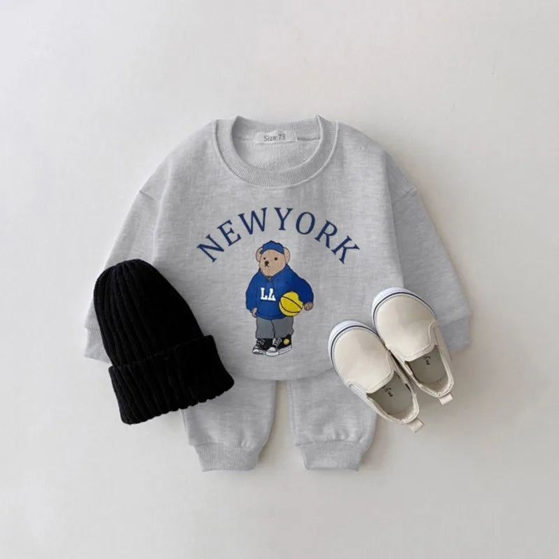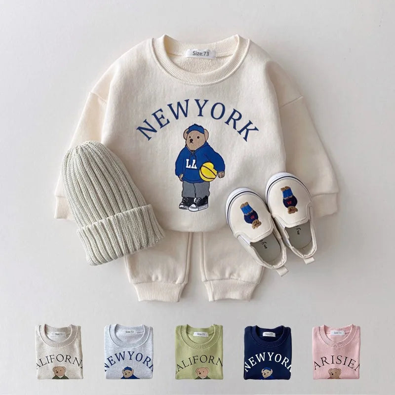 Korea 2023 Baby Boys Clothes Sets Letter Bear Girls Long Sleeve Casual Hoodie Sweatshirt+Pants 2pcs Kids Clothes Sports Suit New