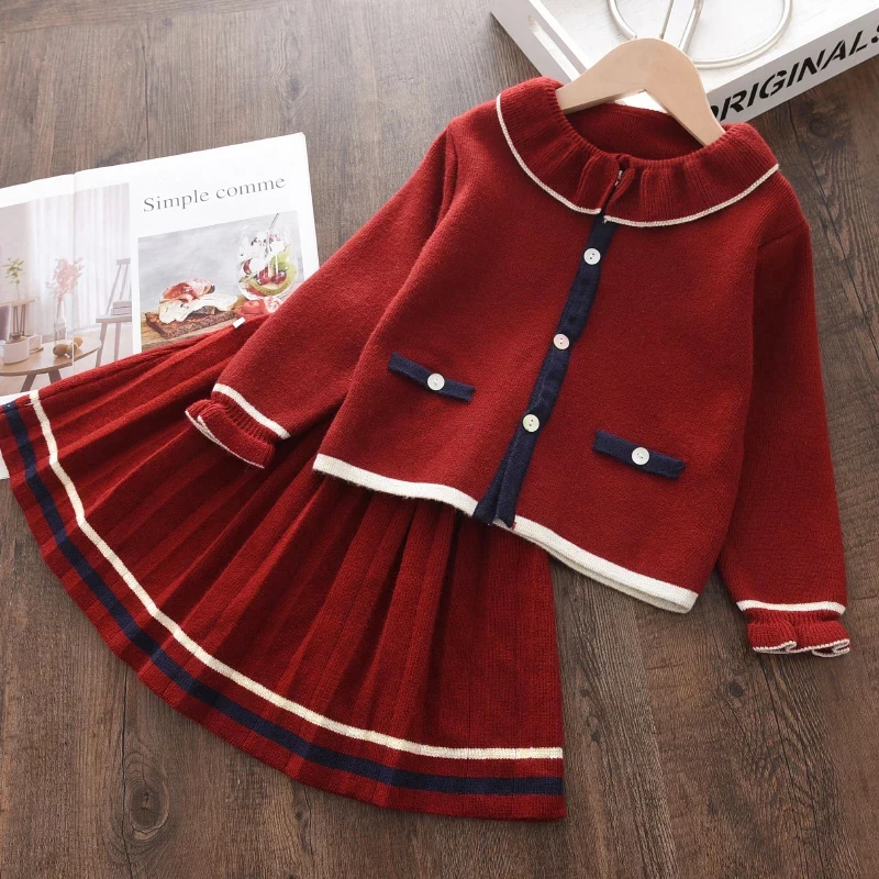 Melario Floral Girls Baby Knitted Clothes Sets Fashion Winter Sweaters Tops Ruffles Skirt Outfits Beading Children Clothes Suit