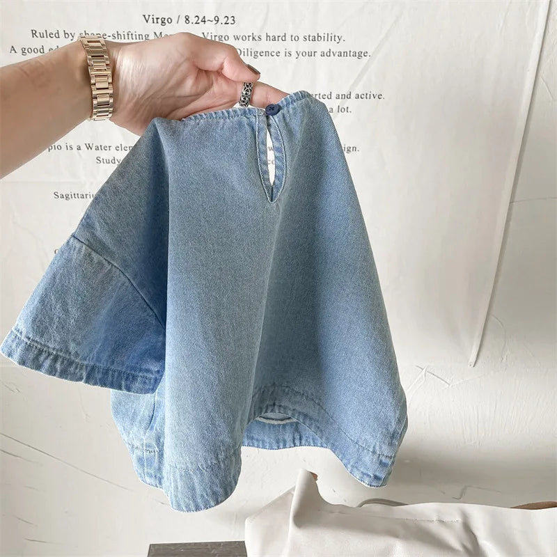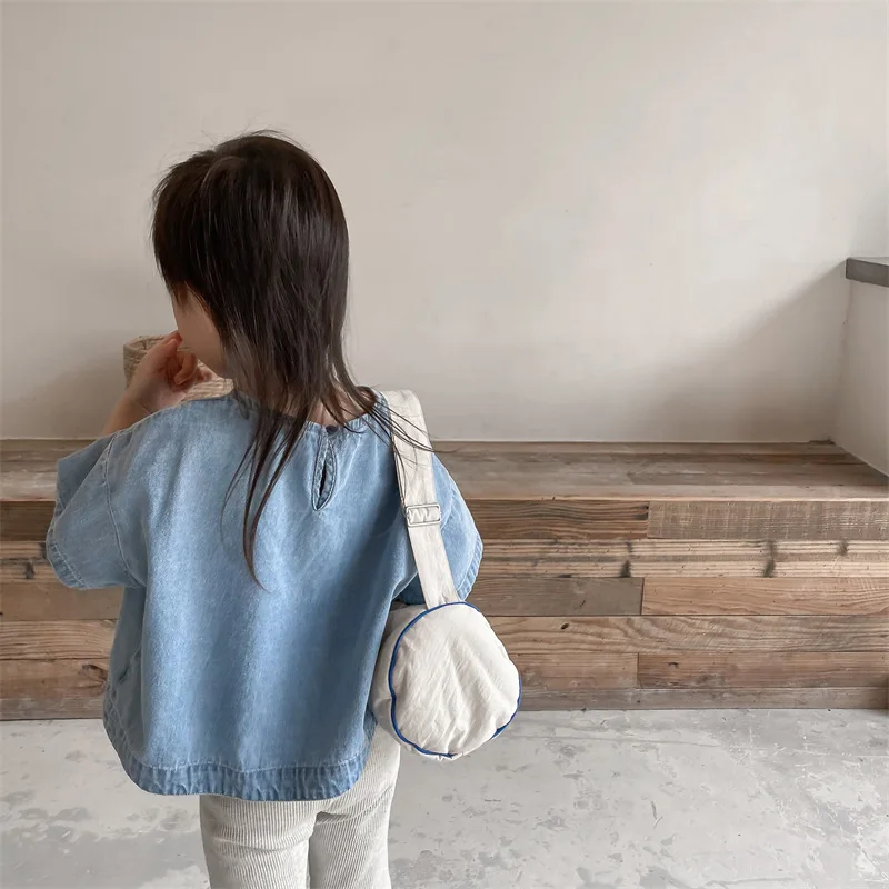New Children Clothes Kids Girl Short-sleeved Blouses Toddler Boys Wash Thin Blouse Baby Wide Shirts Fashion Child Denim Tops