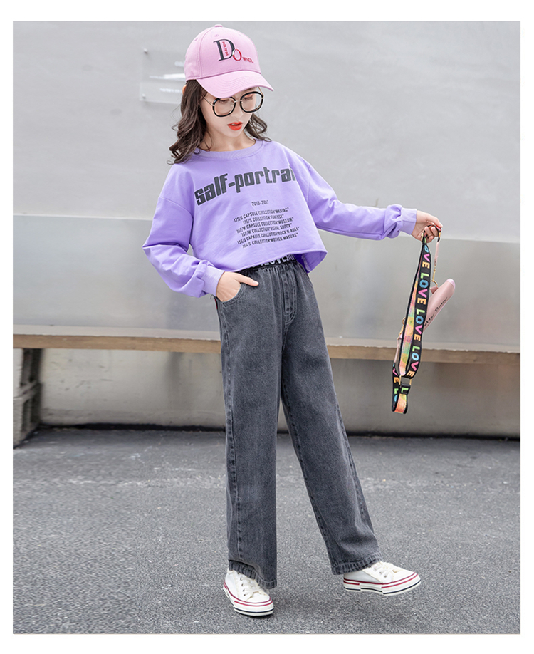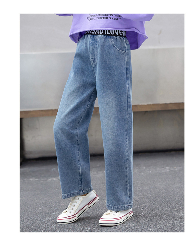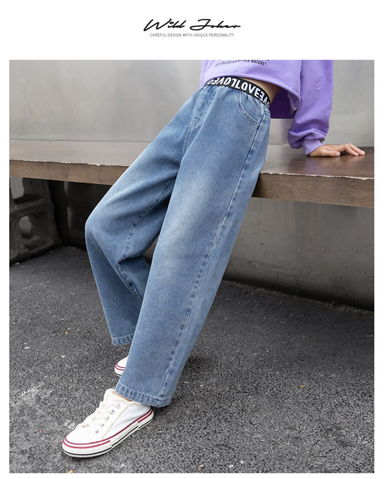 New Jeans For Girls Patchwork Kids Jeans For Girls Letter Patern Kids Jeans Casual Style Children Clothes 6 8 10 12 14 years
