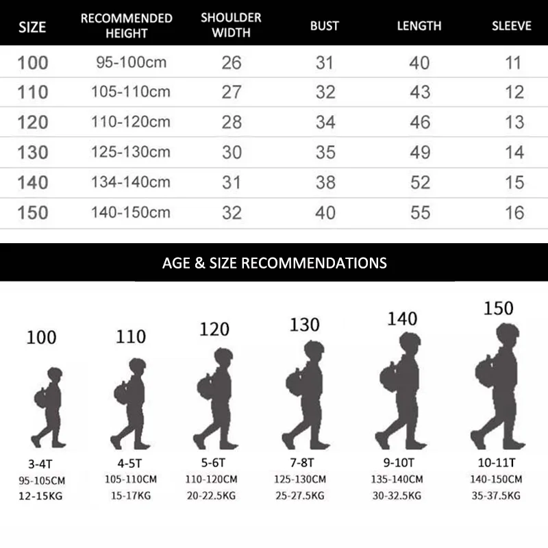 Kids Clothing Size: 12M, 24M, 3T, 4T, 5T, 6T, 7T