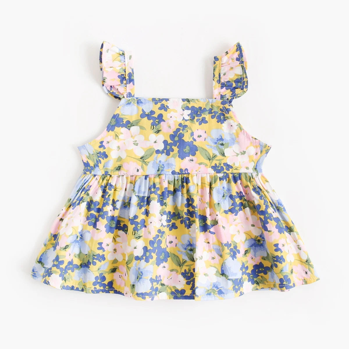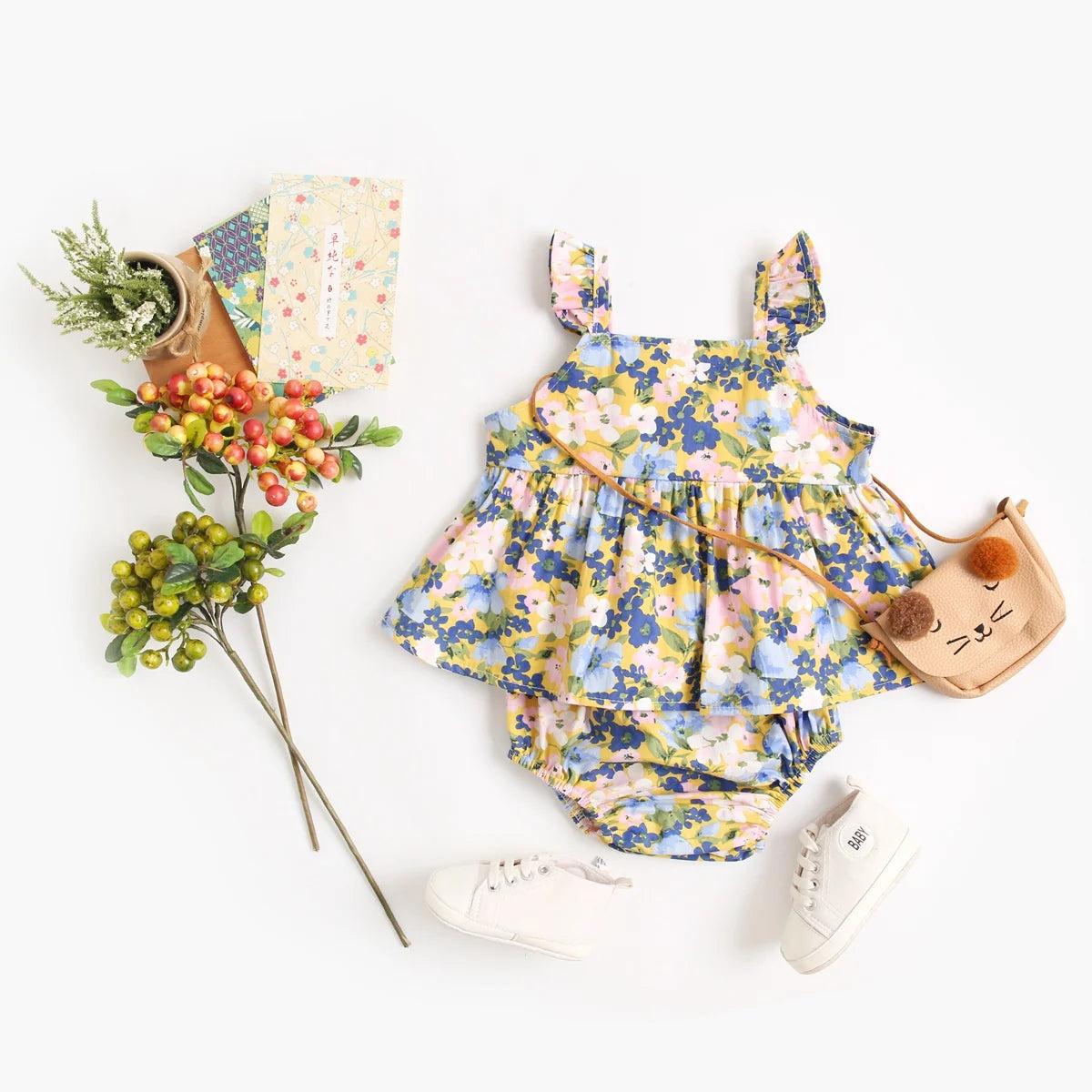 Sanlutoz Floral Infants Girls Clothing Sets Cotton Sleeveless Tops + Shorts Casual Baby Clothes