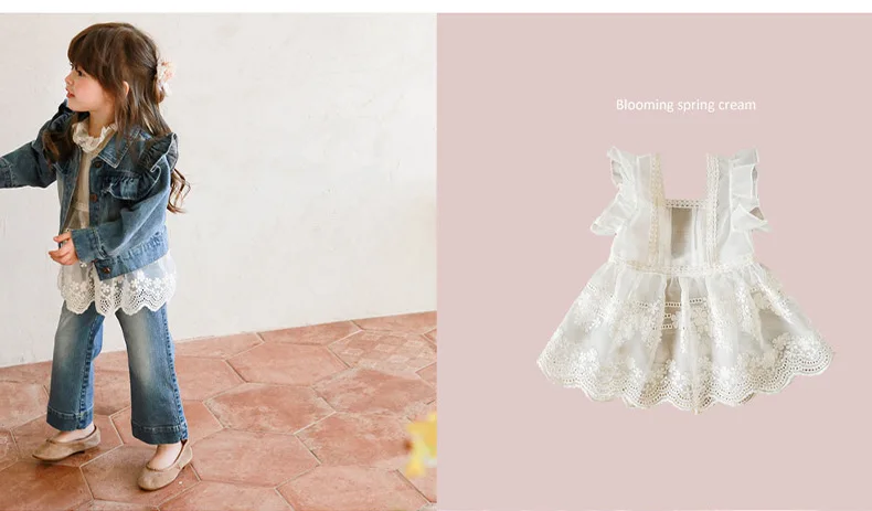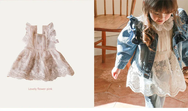 Spring 2022 South Korean Children Clothes Girl Princess Dress Lace Vest Sundress Sweet Fresh Fashionable Baby Girls Dresses