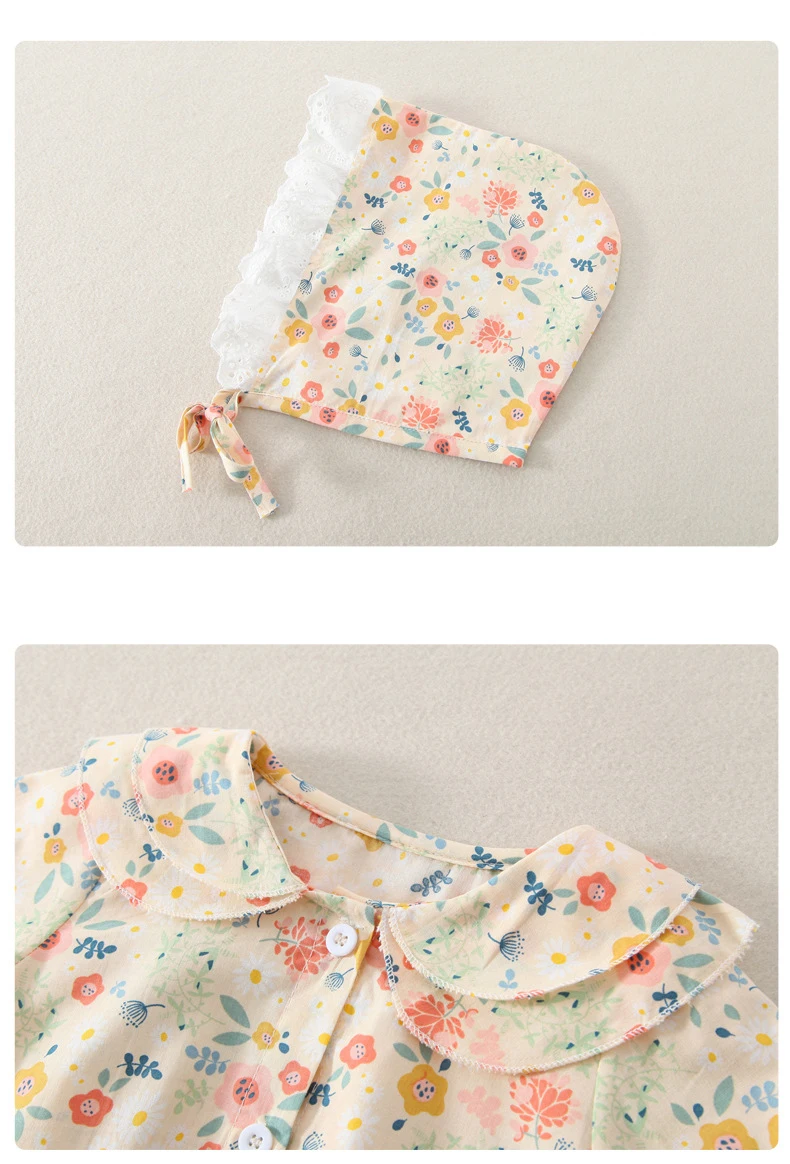 Summer Baby Girls Romper+Hat Cotton Peter Pan collar Ruffles Lace Long Sleeve Infant Rompers Newborn Clothes Bebe Cute Garments