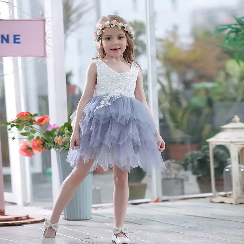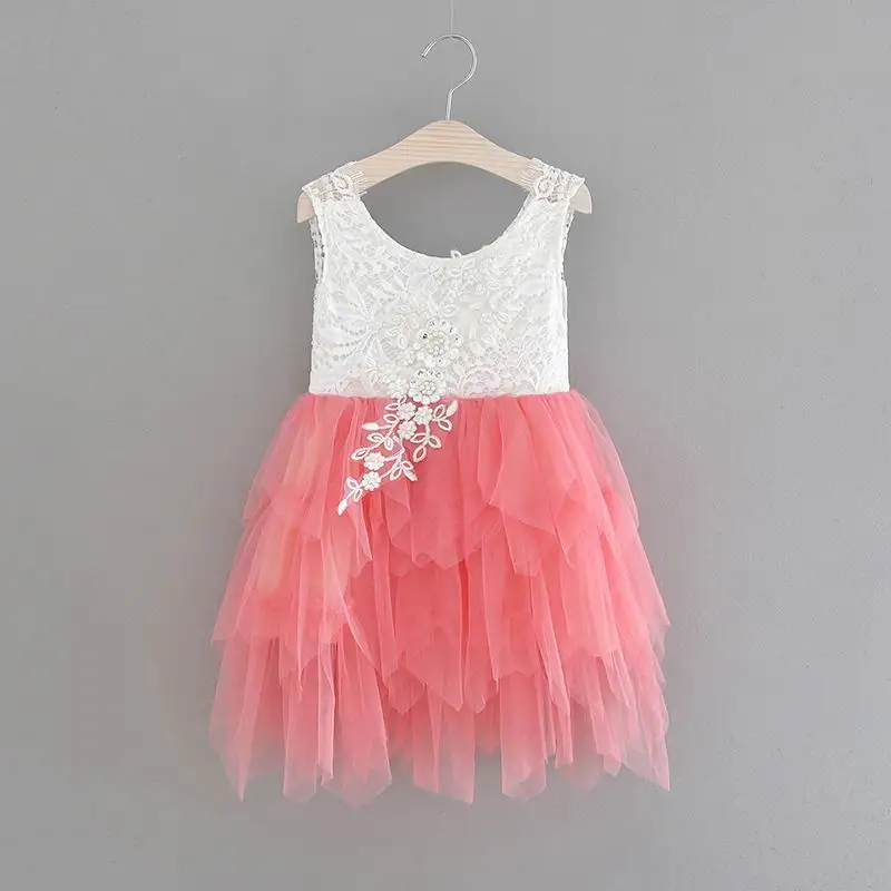 Summer Lace Girls Dress Gauze Kids Princess Dresses for Girl Vest Dress Party Dress Baby Clothes E16900