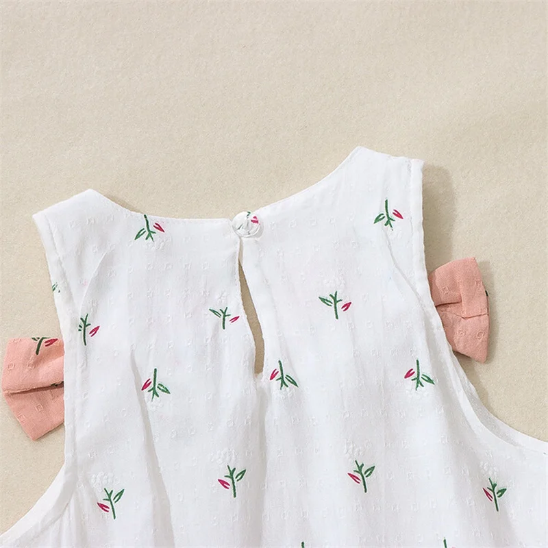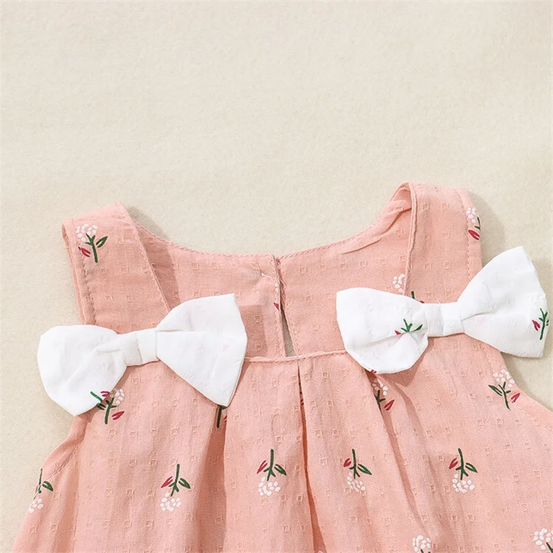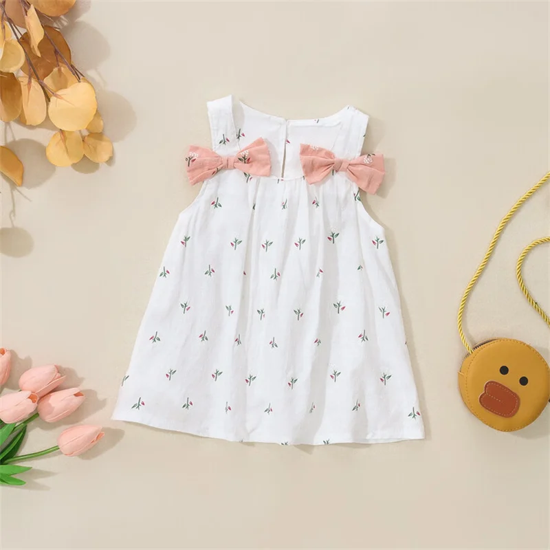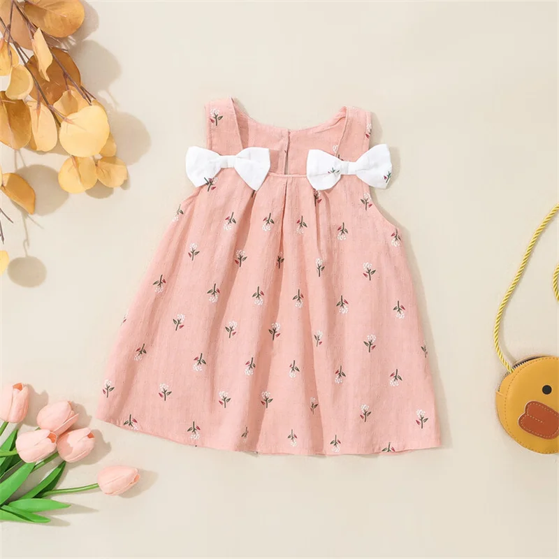Summer Simple Solid Color Flower Baby Girl Dress Sleeveless Bowknot Children's Clothes Thin Breathable 0 To 3 Years Old Toddler